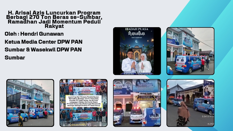 Amanatnews.com – Momentum bulan suci Ramadan dimanfaatkan sebagai ladang amal untuk menebar kebaikan dan kepedulian kepada masyarakat. Ketua DPW PAN Sumatera Barat yang juga Anggota DPR RI Fraksi PAN Komisi XIII, H. Arisal Azis, secara resmi meluncurkan program berbagi 270 ton beras untuk masyarakat se-Sumatera Barat, Selasa (10/3/2026).