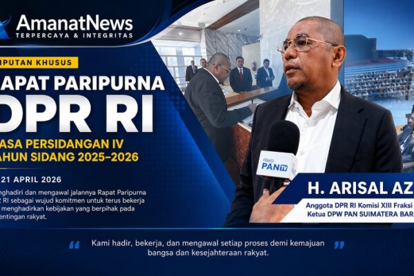 Jakarta, amanatnews.com — Anggota DPR RI Komisi XIII dari Fraksi PAN, H. Arisal Aziz, menegaskan komitmennya untuk terus mengawal kepentingan rakyat dalam setiap proses legislasi dan pengawasan. Hal itu disampaikannya usai menghadiri Rapat Paripurna DPR RI Masa Persidangan IV Tahun Sidang 2025–2026 yang digelar pada 21 April 2026. Dalam pernyataannya, Arisal menekankan bahwa kehadirannya di…